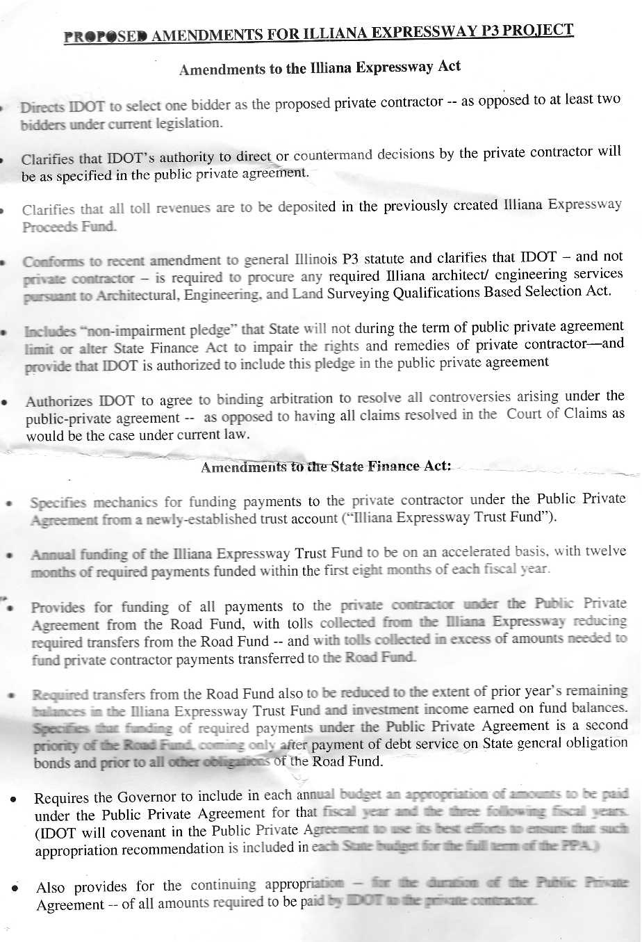 Additionally, the existing law says that IDOT must select two top bidders and receive approval of these bidders from the Commission on Government Forecasting and Accountability and the Procurement Policy Board. The new legislation, perhaps worrying that there might only be one bidder, says IDOT would only need to forward one bidder to those boards.