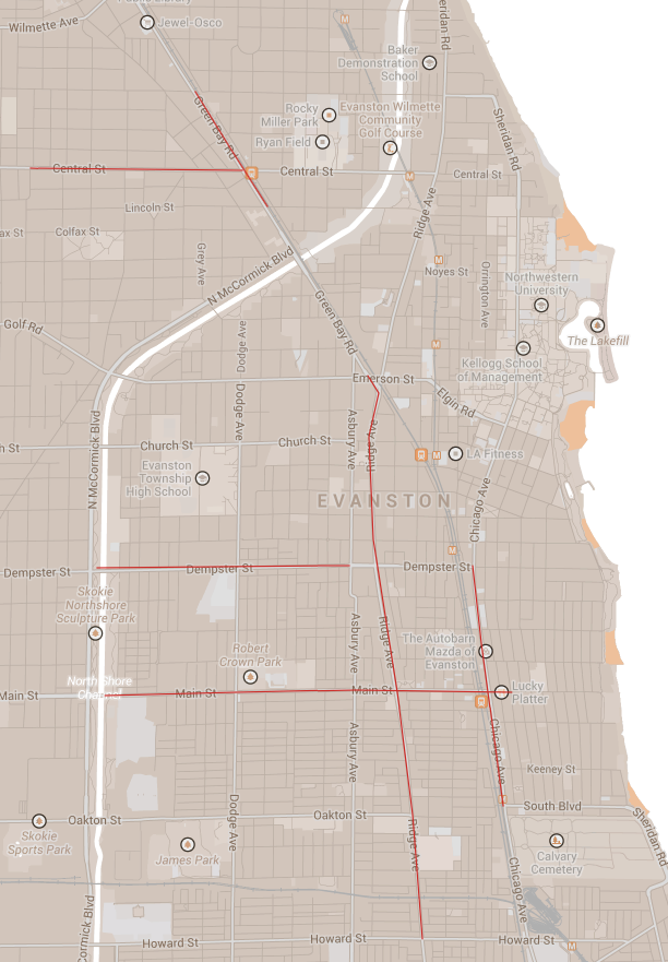 - Chicago Avenue, between Dempster Street and South Boulevard