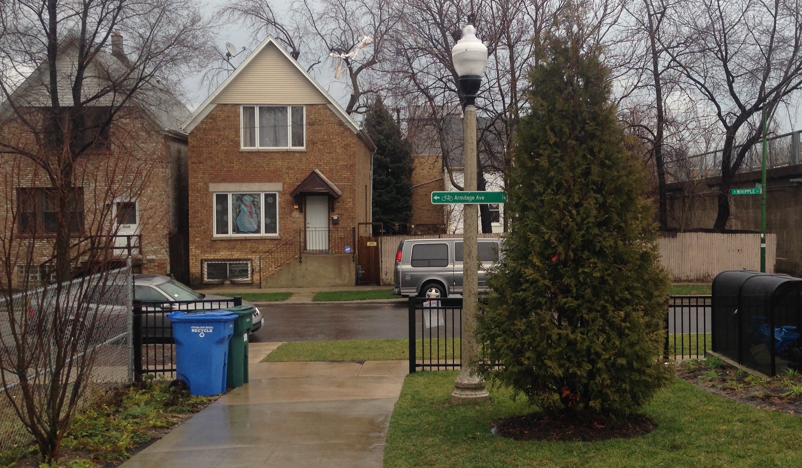 If you’re pedaling south on Kedzie towards the trail, a bike route sign directs you to turn east onto Cortland Street. The next intersection is Albany, but you can’t turn south towards the park there because Albany is one-way northbound. However, there’s no signage indicating you need to head another block east to Whipple, which is southbound. It takes less effort and distance to continue south and turn east onto Moffat St. to access the park.