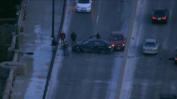 Just before 7 a.m., two southbound drivers collided south of 57th Street and the Museum of Science and Industry. When their vehicles came to a stop on a bridge just east of the Museum Shores Yacht Club, one of the cars lay across both southbound lanes of the drive. (Plans for the nearby Obama Presidential Center site call for adding a third southbound lane between 57th and Hayes Drive/63rd Street.)