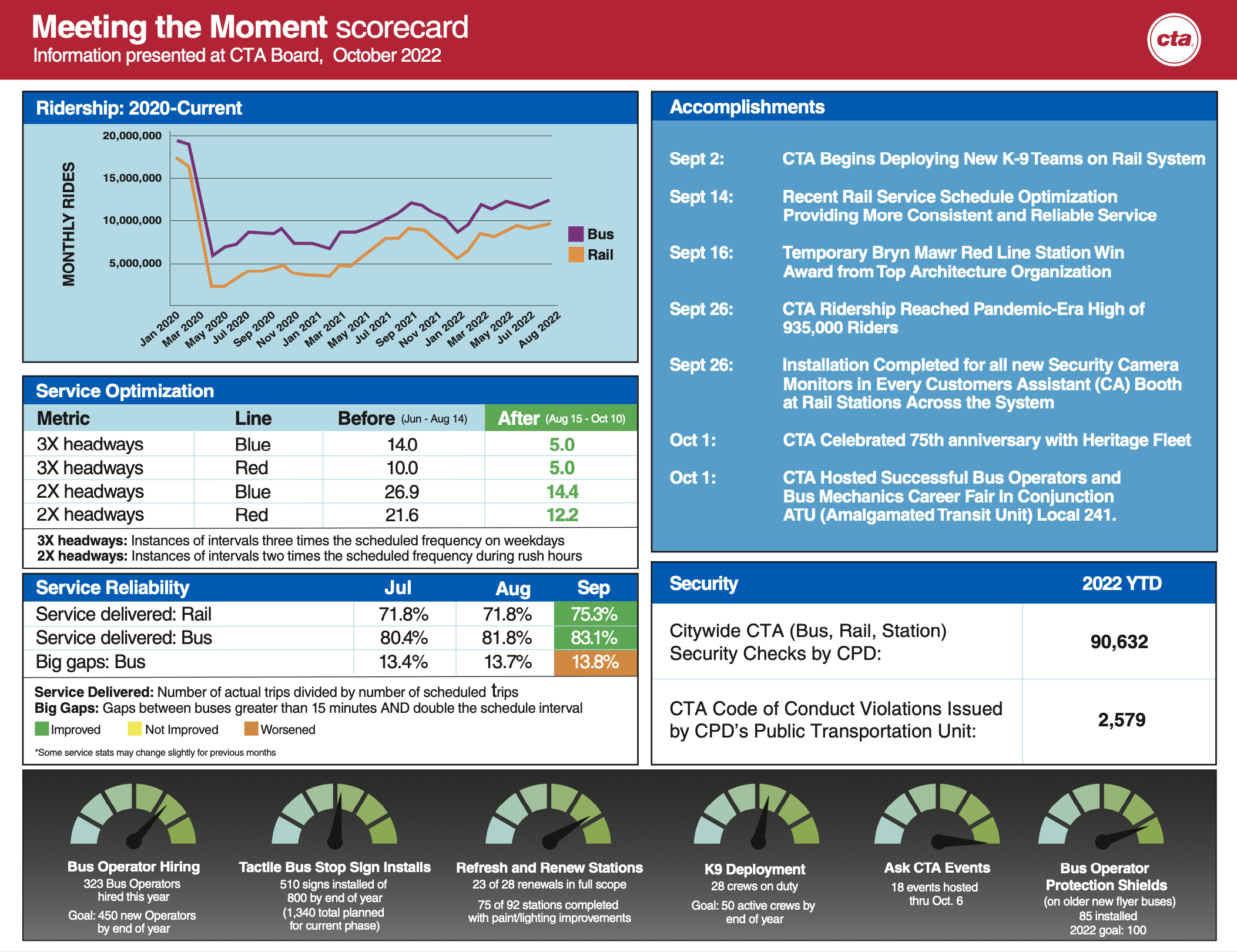 For more info on the Meeting the Moment plan, or to view the monthly scorecards, visit, www.transitchicago.com/meetingthemoment/.