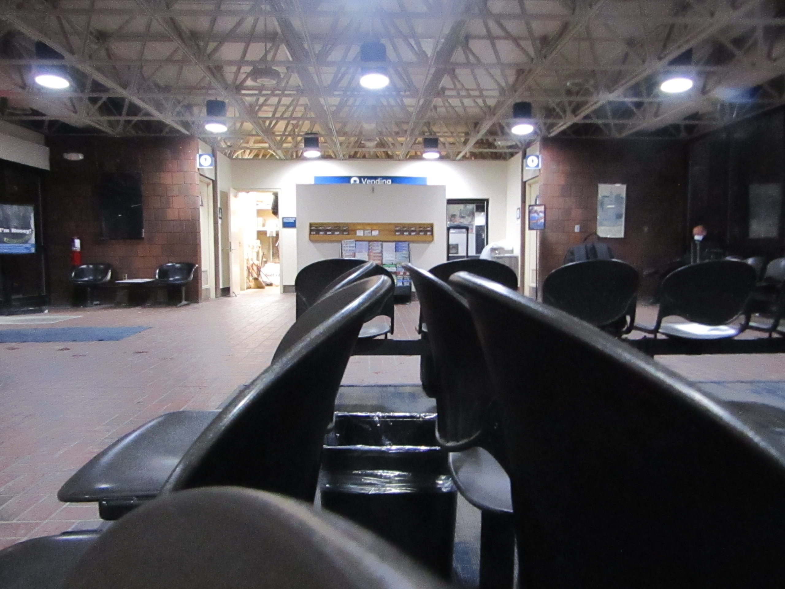 It turned out that the Greyhound bus to Pittsburgh would leave at 1:45 AM local time. The woman by the door bought what turned out to be the only available ticket. The middle-aged man and his companion ended up ordering a taxi. Over the next hour or so, more Train 30 passengers kept coming in, some rebooking for a later trip, some simply leaving in frustration.