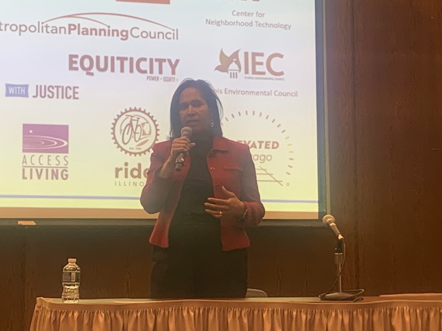 Ald. King (4th) proposed a “regional approach” to transit and greater collaboration between CTA, Pace and Metra to secure more federal funding. She noted her efforts, along with residents, to preserve several bus routes in Bronzeville. Honoré noted that King’s ward, which encompasses parts of the South Loop, Grand Boulevard, and Washington Park, exemplifies Chicago’s wealth disparity, and asked how she would strike the balance of competing interests of building safe streets and incentivizing development. King said she would focus on existing “opportunity zones,” which offer tax incentives to developments in economically depressed areas, to spur growth. King stated that she supports creation of a connected, protected bike lane network, pointing to the bike lanes installed in her ward on Drexel boulevard, Dearborn, and Harrison streets. She said these improvements were made after conversations with advocates, residents and critics.