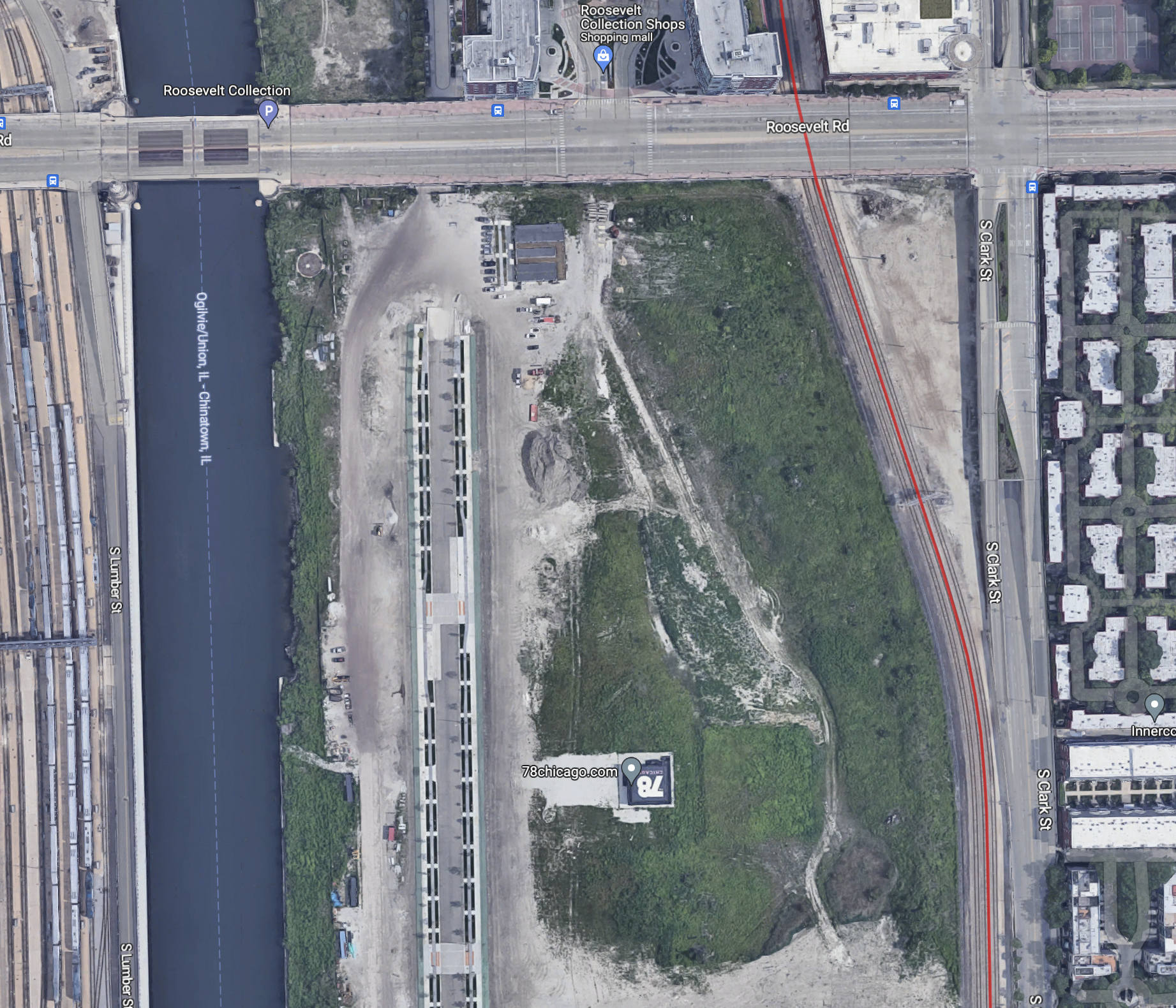 The 78 is being constructed on 62 acres of vacant land bounded by the Chicago River, Roosevelt Road, Clark Street, and 15th Street. According to the Chicago Department of Transportation, the new three-lane street will include new mixed-traffic, turn, and parking lanes, as well as bike lanes raised above the street level.