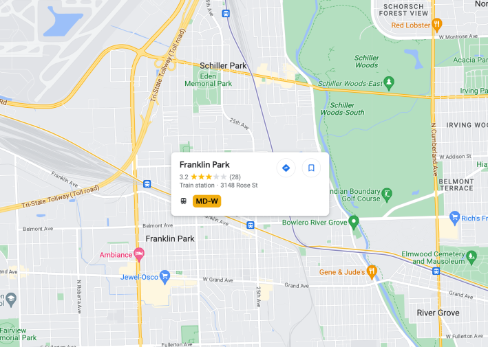 The freight train crossings also affect other modes of public transportation. Pace bus Route 303, which runs between the CTA Blue Line’s Forest Park terminal and Rosemont station, largely follows 25th Avenue/Rose Avenue corridor in Franklin Park, passing near the Milwaukee District West Line’s downtown Franklin Park station. Freight train congestion disrupts the transit connections and causes delays (something this reporter experienced first-hand while covering the local high school district a few years ago).