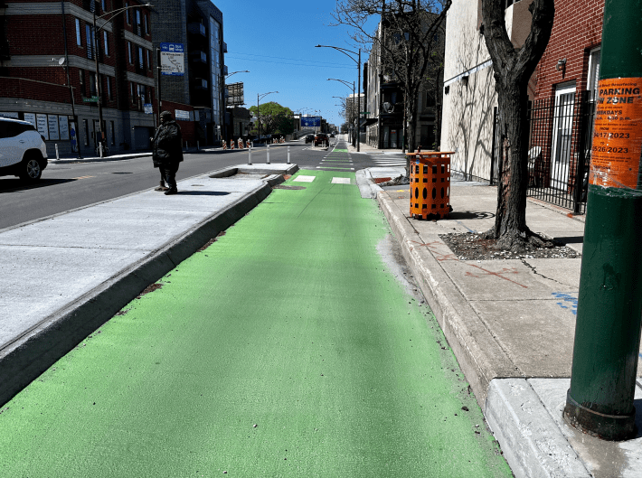 However, the alderman did get back in touch with us about the project today. “The concept calls for concrete curb separated lanes and will necessitate the removal of on-street parking on one side of the street,” he said. “[I] requested that CDOT hold a public open house… prior to finalizing the plans so that businesses along this corridor and nearby residents could learn more about the proposal, ask questions, and raise any concerns.”
