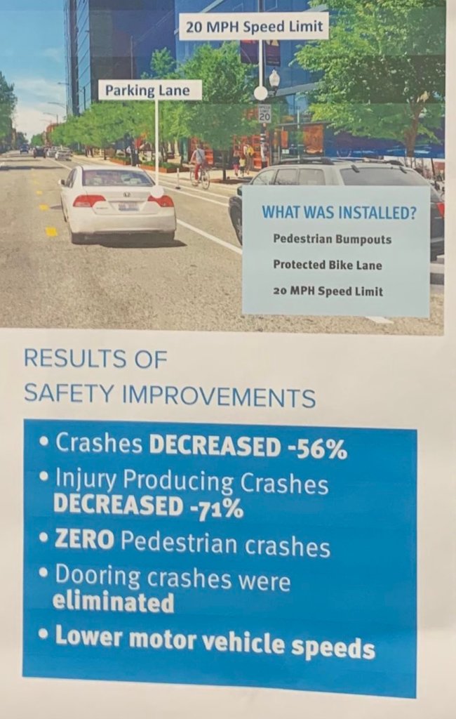 Another table talked about the relationship between safe bike infrastructure and local businesses. Participants suggested helping merchants better appreciate the value of protected bike lanes through an interactive and educational approach, which could include taking surveys or providing data from existing PBLs that helps highlight their benefits for bike riders and businesses.