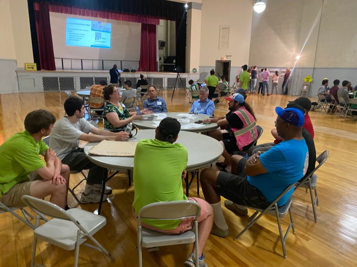 Another table discussed barriers to walking, cycling, and other forms of active mobility. An unanimous agreement among the group was that the most significant barrier was the possibility of being struck by a driver. They also agreed that ways to fix the issue include physical barriers like concrete curbs, as well as non-police enforcement, such as deputizing the city’s citizens with the 311 app or having a team run by CDOT that would be able to write tickets for driving and parking violations.