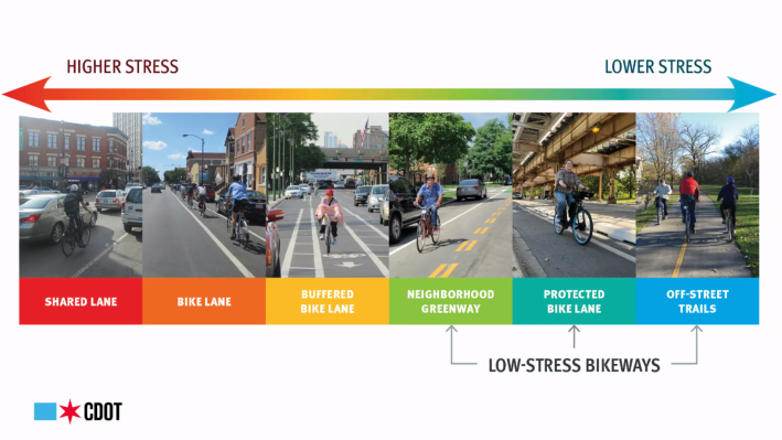 The idea is to also make the commuting experience much more enjoyable — and “low stress” — for cyclists, Huff added. That will give bicyclists an alternative route to busier streets where people are driving much faster and the risk of injury or death is also much higher. And lower stress corridors are likely to help less experienced riders, as well as children, gain more confidence in riding in Chicago.