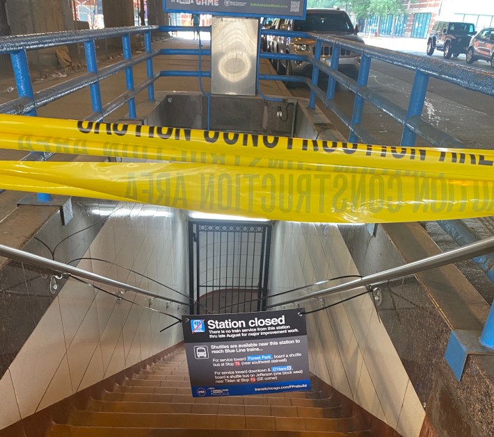 Last Wednesday the CTA sent a reminder press release, noting that starting at 3 a.m. on Sunday, July 23 (yesterday), Phase 1 of the project would kick off with the closure of the line between the LaSalle (130 W.) and Illinois Medical District (1900 W.) stations. This will allow workers to completely overhaul 15,000 feet of track (nearly three miles), rebuild the Racine station (1200 W.), and update the the traction power system. Phase 1 will hopefully finished be largely by October 7, when this section is slated to reopen. The agency also provided details on how affected Blue Line riders could take advantage of free and reduced-price rides on relevant rail and bus lines.