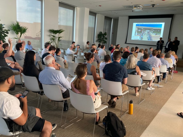 About 100 people attended the hearing and, unsurprisingly, many got there by bike. The chief presenter was CDOT planner Soliman Khudeira.