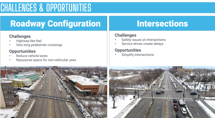 The first community meeting for the INVEST South/West Ogden Avenue Corridor Improvement Project was held last Monday. The initiative covers a 2.5-mile stretch of the southwest-northeast diagonal street, from from Pulaski Road (4000 W., about 2200 S.) to Roosevelt Road (1200 S., 2300 W.), mostly in the North Lawndale community. This hearing was hosted by the Chicago Department of Transportation and local alderpersons Monique Scott (24th), Michael Rodriguez (22nd), and Jason Ervin (28th).