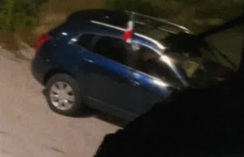The Community Alert states that the motorist fled the scene in an unknown direction. It says the vehicle was a dark blue 2011 Cadillac with Illinois registration #DV19629, and anyone with information on the crash can call the Major Accidents Investigation Unit at 312-745-4521. The alert includes photos of the SUV taken immediately after the crash.