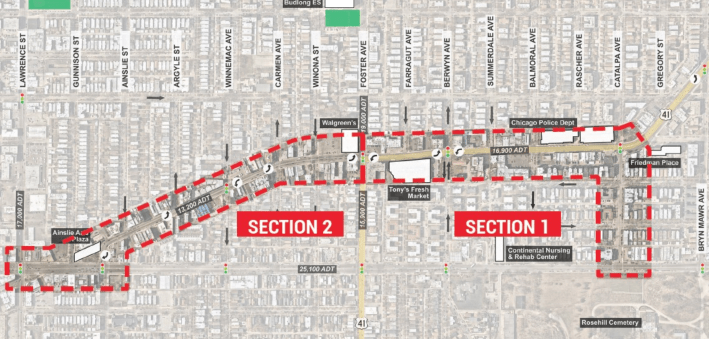 According to CDOT, “The streetscape’s construction will be broken into two sections, with work beginning on the north end of the project between Foster Avenue and Catalpa Avenue and Catalpa Ave between Lincoln Avenue and Western Avenue. The second section, consisting of Lincoln Avenue between Western Avenue and Foster Avenue, will be constructed in 2024. Substantial completion is expected by the end of 2024.”