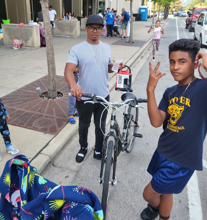 About a month ago, the grassroots collaborators met with the Chicago Department of Transportation to explore how the city could help coordinate and scale up the effort. One ask of the agency is to secure a bike storage and pickup point downtown, close to where thousands of migrants are sheltering. Mack said the now-closed HUB312 bike station in Millennium Park would be an ideal spot.