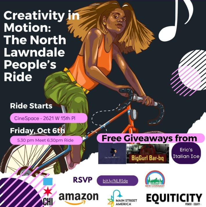 “Did you know that you can find a piece of Hollywood right in North Lawndale?” said the ride’s event page. “Join us October 6th to explore film and televisions cinema businesses. This community bike ride that will highlight important production locations as well as small businesses. Let’s support them by lifting up the community by creating awareness through movement, conversation, and joy that will be felt as we ride through the neighborhood. There will be music, lively energy, and most importantly COMMUNITY!”