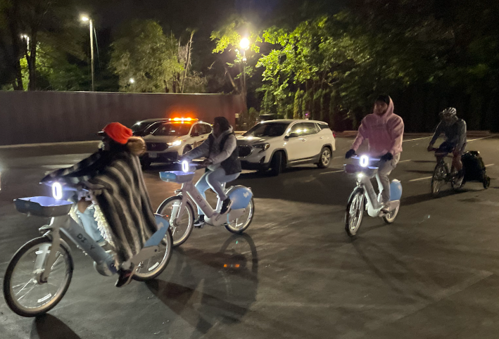 Last Friday, the mobility justice nonprofit Equiticity held its first-ever “Creativity in Motion: The North Lawndale People’s Ride,” a community bike ride focused on film and television. The ride began and ended at Cinespace, 2621 W. 15th Pl. in North Lawndale, meeting at 5:30 p.m. and departing an hour later. It’s a studio where several movies and shows have been filmed, such as the Chicago Med / Fire / P.D. franchise. The ride participants got to bike through Cinespace and passed the outside of the Firehouse, where Chicago Fire is filmed.