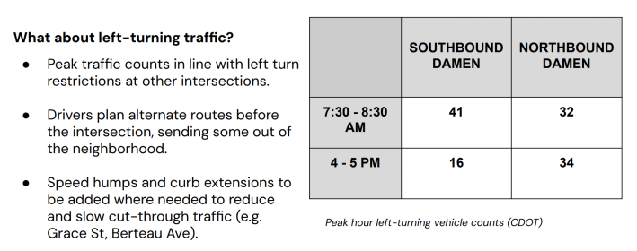 So clearly banning left turns from Damen is the way to go. Learn more about the proposal by viewing the linked materials below, and then share your POV on the in the survey.