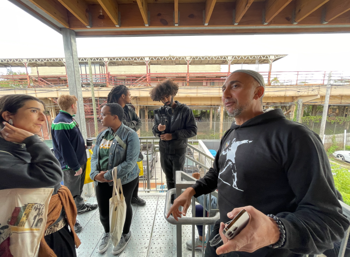 Those on the Fall Fest walking tour were able to go upstairs, above the market where they had meeting rooms for community meetings. On the back porch the walkers could see the Racine Green Line station for themselves, Nashashibi said the planners would turn the station space partly converted into gallery space or some kind of exhibit.