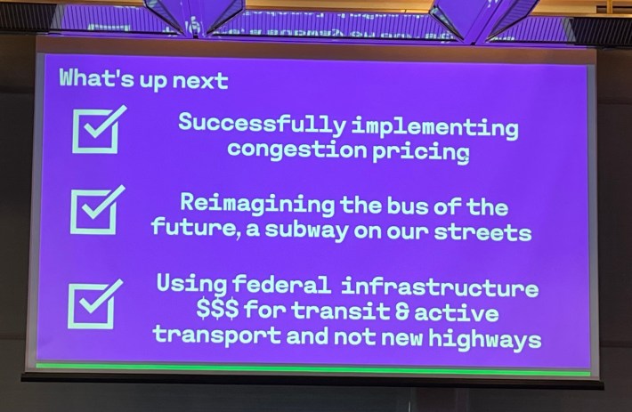 “Congestion pricing is not the be-all, end-all of good transportation policy,” Plum concluded. “And so [there’s] how we make sure that this program and policy is as successful as possible, the things we do around it to make its Day One successful. But then everything we do from the freed-up space on the streets as we’ve heard, and will learn more about, what London did, that is a part of our future and the dream that riders have, is that space will be used for buses and that we can really see a culture change in our city, state, and country.”