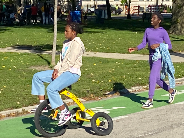 It was clear that many residents enjoyed the car-free streets. “It gives everybody an opportunity to come together,” said a North Lawndale resident named Abrylia, who also goes by the nickname Breezy. “It’s just something positive to do in the community for everybody around.”