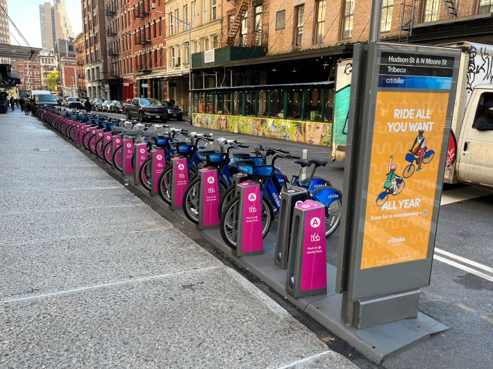 I frequently rode New York's Citi Bike, which like Chicago's Divvy bike-share system is run by Lyft, although Divvy memberships aren't valid on Citi Bike. The equipment is very similar, although many NYC stations are much larger than their Windy City counterparts. But unlike e-Divvies, electric Citi Bikes don't have built-in cable locks (presumably due to NYC's more aggressive bike thieves) and can only be parked at stations. I learned that the hard way while running late for a dinner appointment.