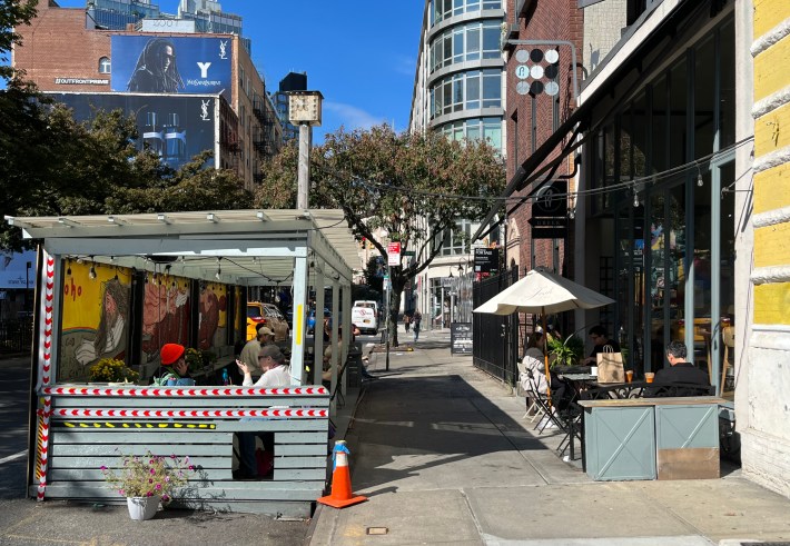 Meanwhile, parking spot seating seems to be everywhere in eatery-heavy New York districts thanks to the city's Open Restaurants program. Much of it is nicely designed, and it often has good weather protection, which means that it can potentially be used most of the year, in all but the most challenging weather.