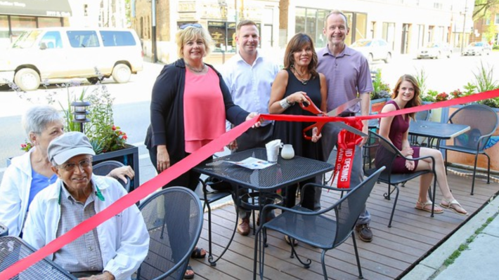 Chicago experimented with "Curbside Cafes," seating areas for patrons of restaurants and bars locating in car parking spots, in a few locations, but the pilot quickly petered out. Problems included the facts that the city's hated 75-year parking meter contract requires the parking concessionaire to be compensated for lost revenue, and that the seating areas had no weather protection.