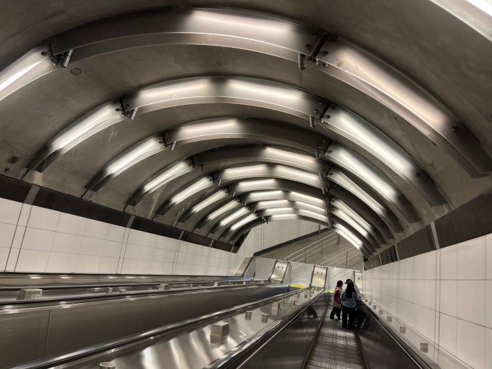 Still, the public transportation I took from LaGuardia to meet up with Streetsblog editors at a tavern in the West Village, near the network's NYC HQ, was pretty good. I went downstairs from the baggage carousel to catch a Q70-SBS Laguardia Link bus, which provided a no-charge, nonstop ride to the Jackson Heights Metropolitan Transportation Authority (MTA) station.