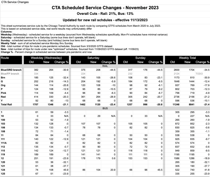 On the other hand, that same day the transit agency kicked off a new rail schedule that involved service reductions. That was evident from the General Transit Feed Specification published by the CTA earlier that week, but not publicized by the agency.