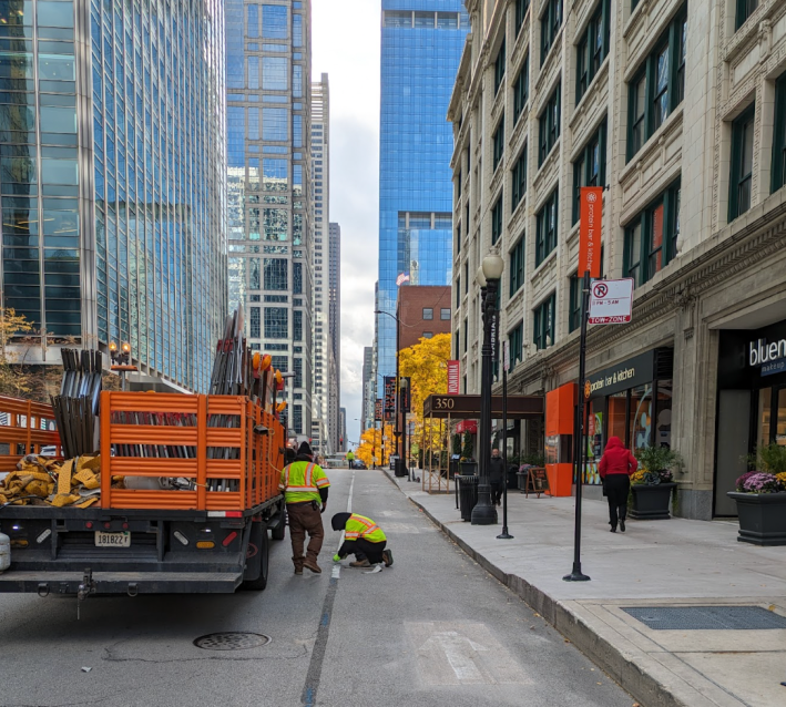 On October 27, Streetsblog Chicago editor-at-large Steven Vance asked me, in the wake of the bridge reopening, “Will the current Wacker and Clark PBLs remain in place, or what’s the future of those locations?”
