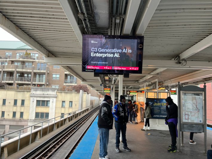 Unfortunately, due to “police activity” in the downtown subway this morning, they made us wait on the train for a while at the Harrison station. Eventually we were told the line was being rerouted to the downtown elevated tracks, so I rode a few blocks to the Roosevelt station and caught a Red Line train redirected from the subway.