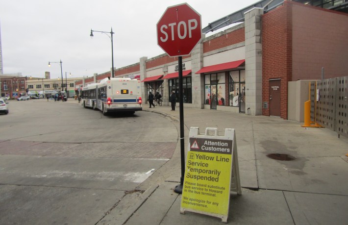 More importantly, there appears to be some confusion about whether the shuttle stops at the Yellow Line’s one intermediate stop, Skokie’s Oakton-Skokie station. The CTA insists that the shuttle makes all Yellow Line stops, but from what I observed and what the Chicago Tribune reported last week, that isn’t true in practice. Some shuttles race past the Oakton-Skokie stop, and even some CTA staff members appear to be under the impression that the shuttle is a nonstop Dempster-Howard express.
