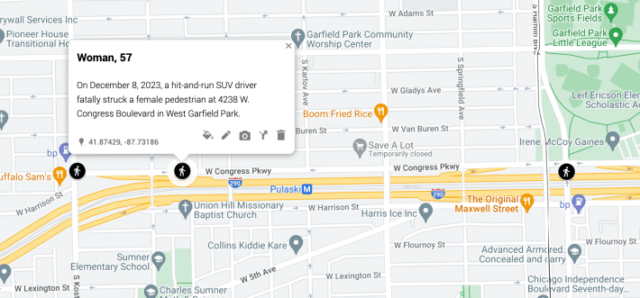 - On December 8, 2023, a hit-and-run SUV driver fatally struck a female pedestrian in the 4200 block of Congress Parkway in West Garfield Park.