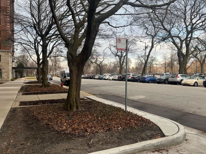 The employee added that a CDOT worker recently stopped by and said the "No Bikes" sign needed to be removed, but the building could post a sign on the ground by the flower bed. "We're going to monitor it as spring progresses," the Promontory Apartments staffer told Streetsblog. "We may put out a sign that says you can park bikes on the pole, but please don't disturb the flowers." That seems like a reasonable solution.