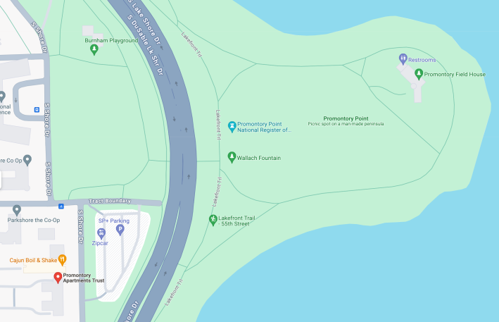 So real laws governing motorists at at Promontory Point were sometimes not enforced. But until recently a non-existent rule against bicycle riders parking in front of a building just west of the peninsula was promoted with an illegal sign. Streetsblog Chicago contributor Steven Lucy, who lives in the neighborhood, recently pointed out the problem in a Twitter thread about Promontory Apartments, 5530-32 South Shore Drive.