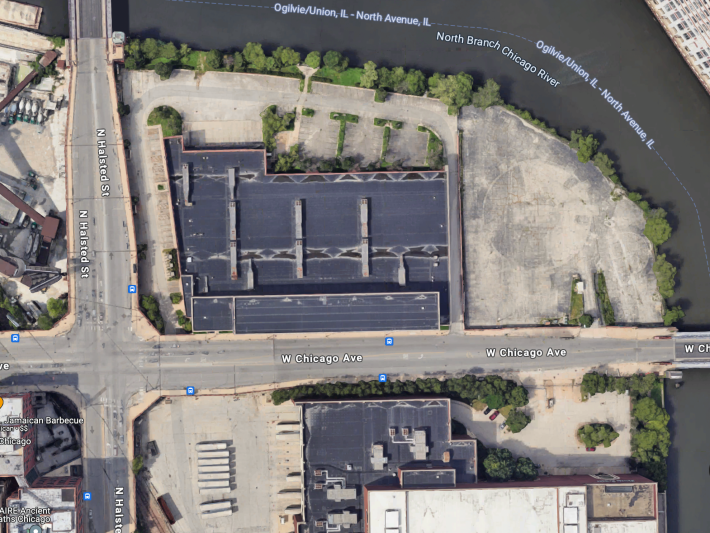 The Chicago/Halsted intersection is tricky because both streets are raised. Halsted crosses over the freight-only Union Pacific Railroad tracks that historically served businesses along the west shore of the Chicago River, including the aforementioned Tribune plant. According to CDOT, the Halsted Street viaduct is over 50 years old and is overdue for a rehab.