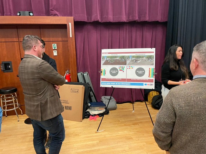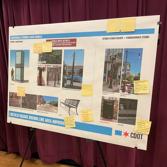 Last week the Chicago Department of Transportation and the 47th Ward held a community open house for the Lincoln Square Brown Line Area Streetscape and Plaza Improvements project. Held at Szold Hall at the Old Town School of Folk Music, the event provided a rundown of what’s happened with the project so far and allowed attendees to leave suggestions on improvements for the Western Brown Line station area. Construction is slated to begin this spring and last for the rest of the year.