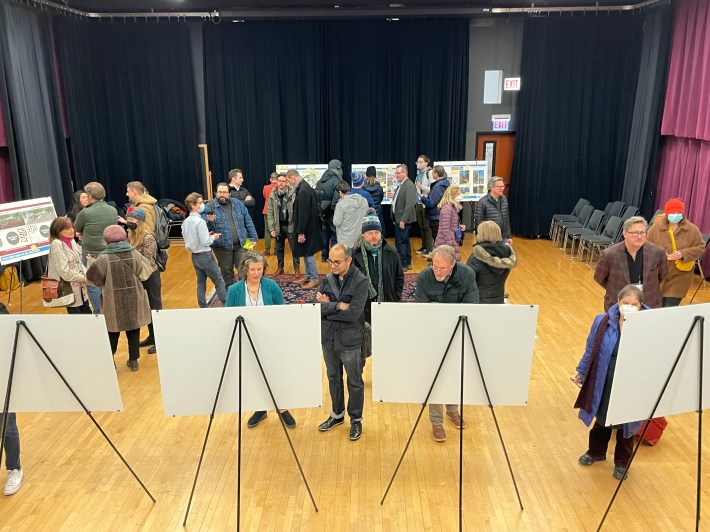 There were two different station design proposals for attendees to voice their support for. Theme A is “Olde World Concept” while Theme B is “Contemporary Arts Concept.” Holly Gerberding, an architect and longtime Lincoln Square resident, opined that the plaza should have a forward-thinking design, because the 20th Century CTA station is never going to look “Olde World.”