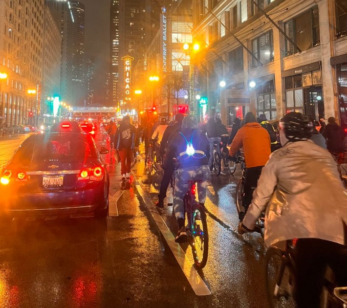 Moreover, the idea that no one uses Chicago bike lanes during colder weather is easily debunked. Sure, not everybody rides a bicycle year-round. But some 100 people turned out for the January Chicago Critical Mass bike protest/parade, despite a moderate rainstorm and a low of 39F.