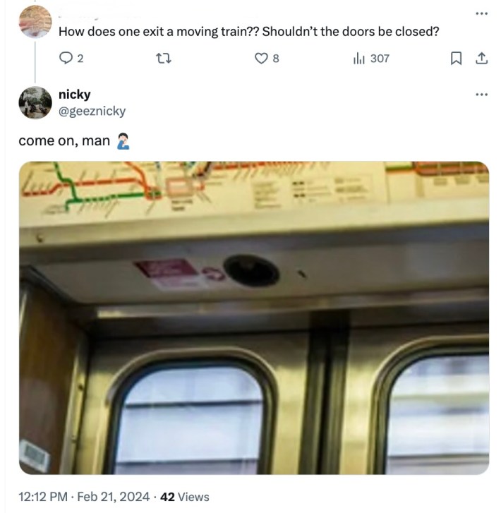 But how exactly did this mind-blowing, but miraculous, situation near the Kedzie stop take place? The Sun-Times reported that, according to police, the “passenger wanted to make her stop [at Kedzie after the eastbound train left the station] so she pulled the manual door release of a moving train and fell onto the tracks.”