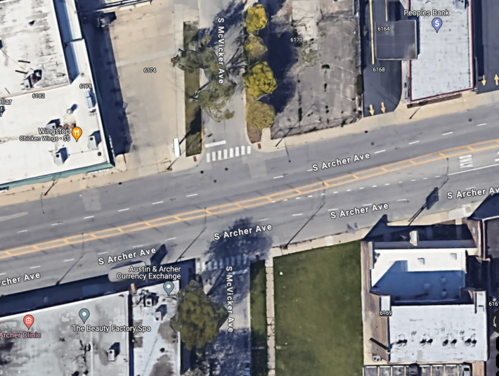 There are two obvious takeaways from this tragedy. Archer/McVicker, which is in the 23rd Ward, represented by Ald. Silvana Tabares, needs to be marked with north-south crosswalks to warn drivers to watch out for people crossing Archer here. This is an unsignalized intersection, and there are stoplights one block west of McVicker at Meade Avenue (6100 W.) and one block east at Austin Avenue (6000 W.) But a church and a school are located one block north of Archer/McVicker, so it’s probably fairly common for people, including children, to cross Archer here.