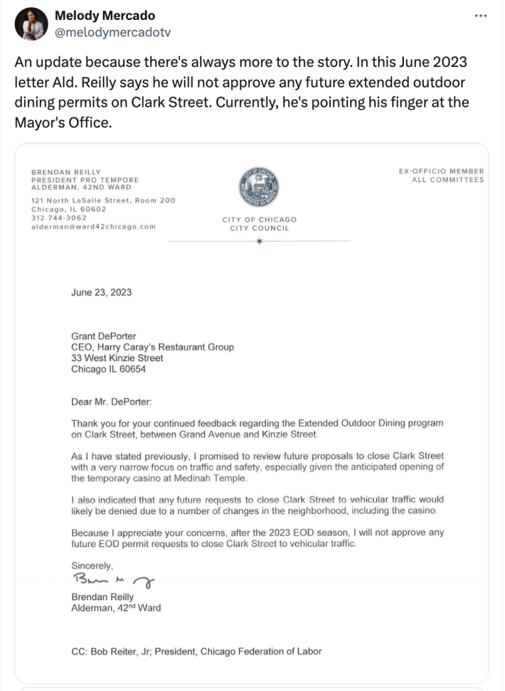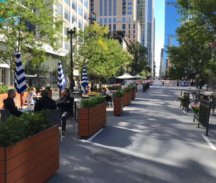 [A petition launched a few days ago, “Allow Outdoor Dining On Clark Street Between Kinzie And Grand“, has garnered over 1,600 signatures.