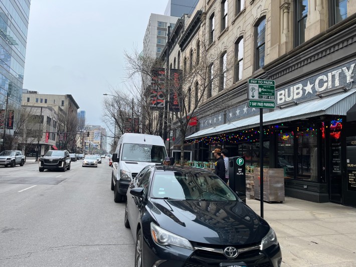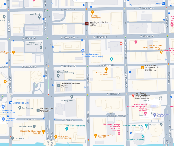 …But what if you were to throw him a bone by pedestrianizing the section of Kinzie Street that intersects with Clark, that Harry Caray’s is on? That would also make bicycle riders very happy because, as it stands, the Kinzie protected bike lane, which leads into River North and connects with the Dearborn Street bike lane, is unprotected on the stretch between Wells Street and Dearborn. So what if you were to pedestrianize that stretch during the warmer months – is that something that could please the CEO of Harry Caray’s, and also improve traffic safety? Is that something you might get behind?