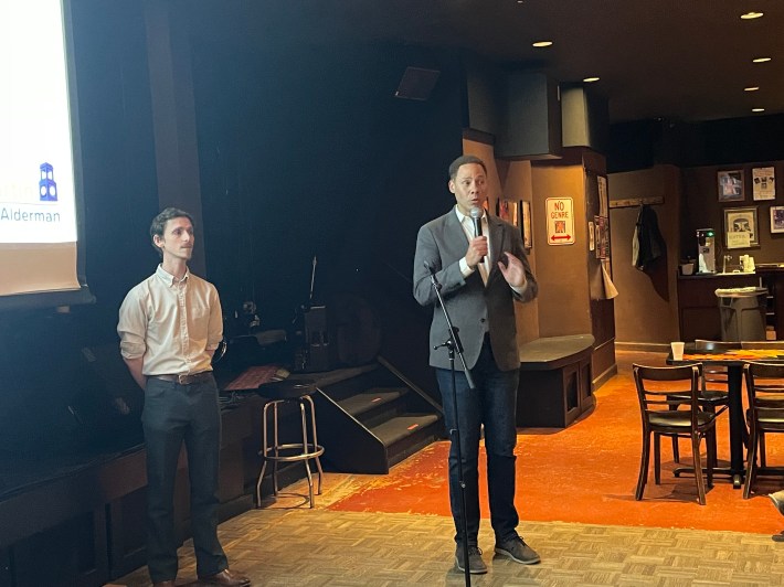 On Wednesday, a meeting about traffic safety improvements in the 47th Ward was held at Martyrs’. Speakers included Alderman Matt Martin and chief of staff Joshua Mark. The Chicago Department of Transportation, Chicago SAFE Ambassadors, Better Streets Chicago, and Chicago, Bike Grid Now! also had info tables for attendees to pursue at the event.