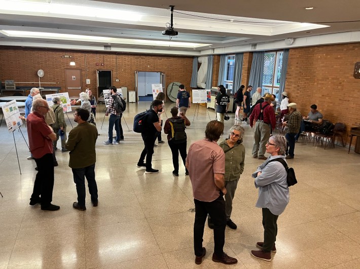 On the other hand, some of the more car-oriented neighbors in attendance were wary of the plans to convert 49 car spots to make room for the bikeway and green space. It was the 47th Ward’s Josh Mark’s job to explain why this wouldn’t cause a parking crunch.