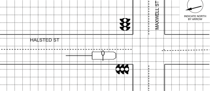 The crash report states that the responding CPD officers reviewed the footage. It shows Hall drive north on Halsted in a gray 2006 Pontiac Grand Prix sedan, and park his car in a tow zone at about 1315 S. Halsted St, just north of Maxwell Street (1330 S.) He then walked west across Halsted.