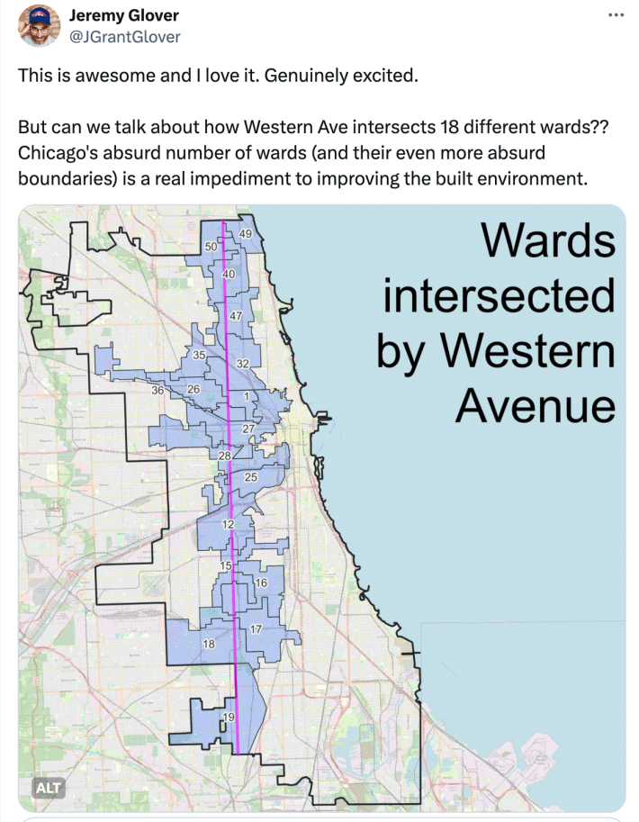 Yesterday alderpersons Andre Vasquez (40th) and Matt Martin (47th), two transit-friendly City Council members in adjacent North Side wards, shared some exciting news. They’ve teamed up with just about every other alder whose district includes Western Avenue, Chicago’s longest street, on a letter requesting a study about the feasibility of a bus rapid transit corridor on that key arterial. They sent the document to Mayor Brandon Johnson, CTA President Dorval Carter, and Chicago Department of Transportation Commissioner Tom Carney.