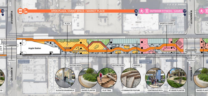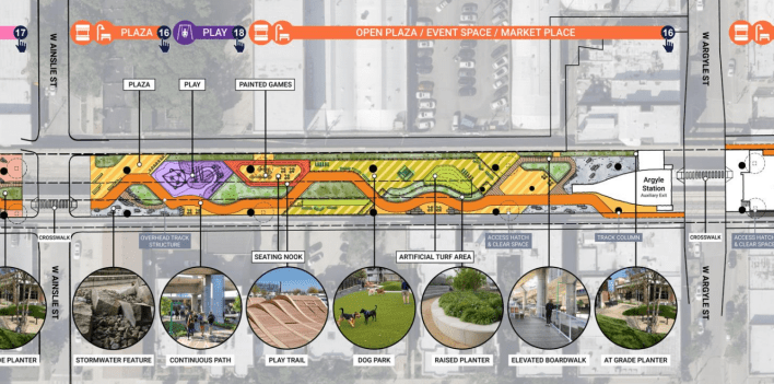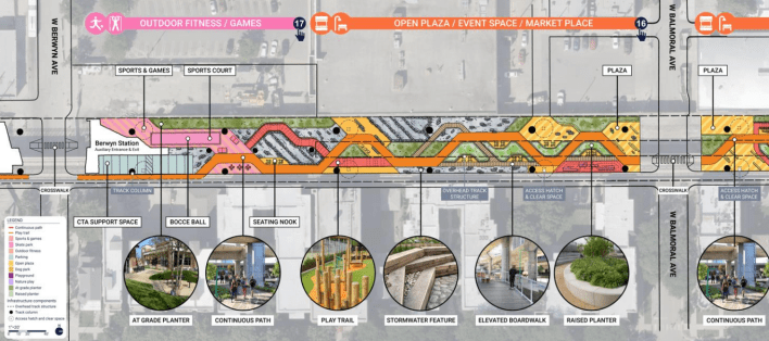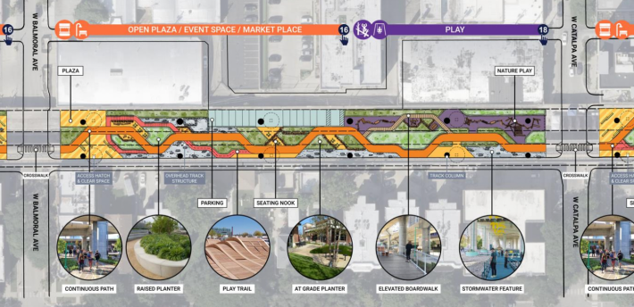 This week the CTA unveiled a “block-by-block” vision of what will go under the newly built elevated Red Line tracks between Lawrence (4800 N.) and Ardmore (5800 N.) avenues in Uptown and Edgewater.