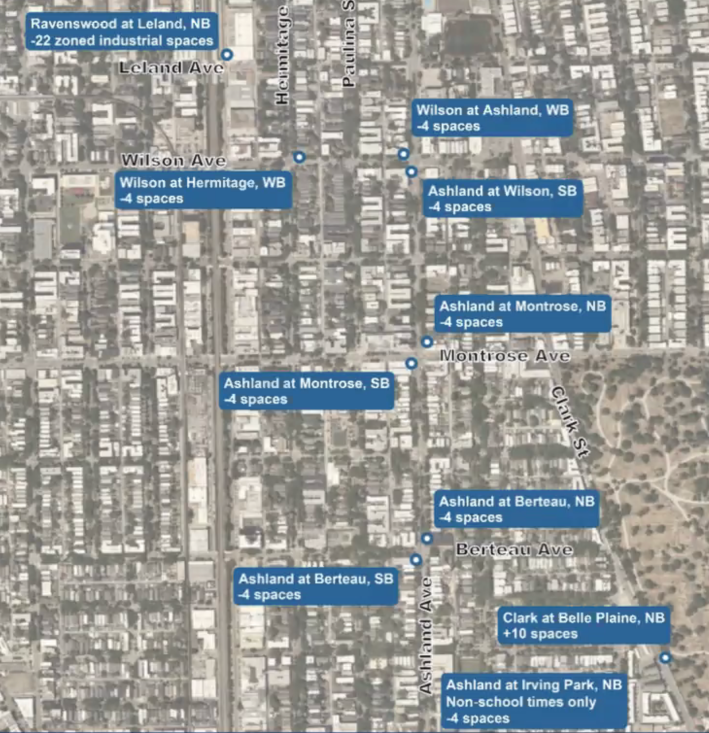 Czerwinsky noted that using Montrose to access Ravenswood would also add two more blocks of travel on Ravenswood. This wouldn’t be ideal for buses, since it has many loading docks and “back out” angled parking parking spaces, which could cause bus delays.